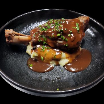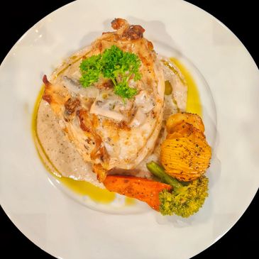 On Herbed Potato Mash and Creamy Pepper Sauce