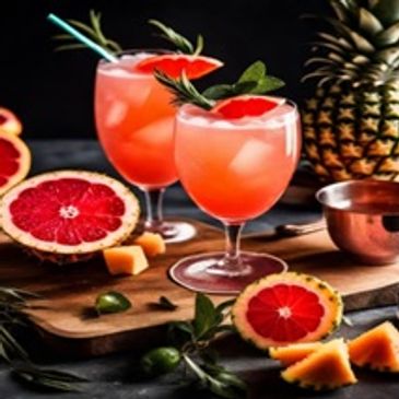 “A vibrant fusion of tangy grapefruit and tropical pineapple, harmoniously blended into a refreshing mocktail bursting with citrus delight”
